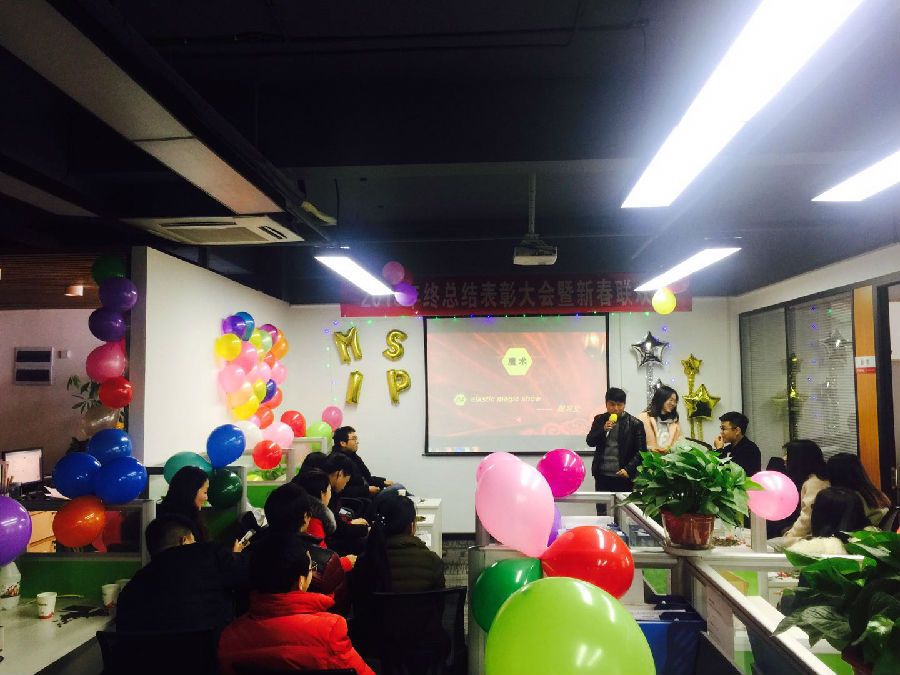 從一大早開始,同事們就開始準備今天的活動事宜,每個人都積極參與,將公司裝飾的五彩繽紛、特別喜慶!吹氣球的,將氣球布置到各個角落的,還不停發(fā)表自己的創(chuàng)意的同事們都盡最大可能將活動場地布置得溫馨有氣氛。