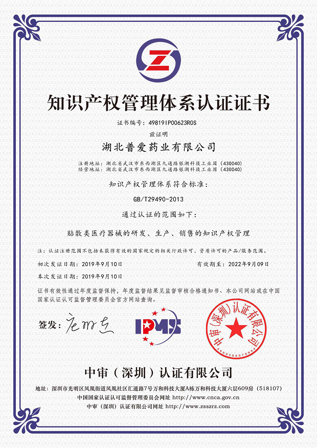 熱烈祝賀湖北普愛藥業(yè)有限公司于2019年9月獲得知識(shí)產(chǎn)權(quán)貫標(biāo)認(rèn)證證書,這意味著湖北普愛藥業(yè)有限公司在知識(shí)產(chǎn)權(quán)領(lǐng)域獲得到重要認(rèn)可,在知識(shí)產(chǎn)權(quán)方面得到進(jìn)一步規(guī)范和在綜合競(jìng)爭(zhēng)力得到進(jìn)一步提升。