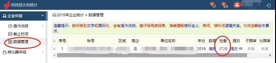 填寫(xiě)完成后,點(diǎn)擊『數(shù)據(jù)管理』,對(duì)錯(cuò)誤項(xiàng)進(jìn)行檢查,錯(cuò)誤項(xiàng)必須修改;